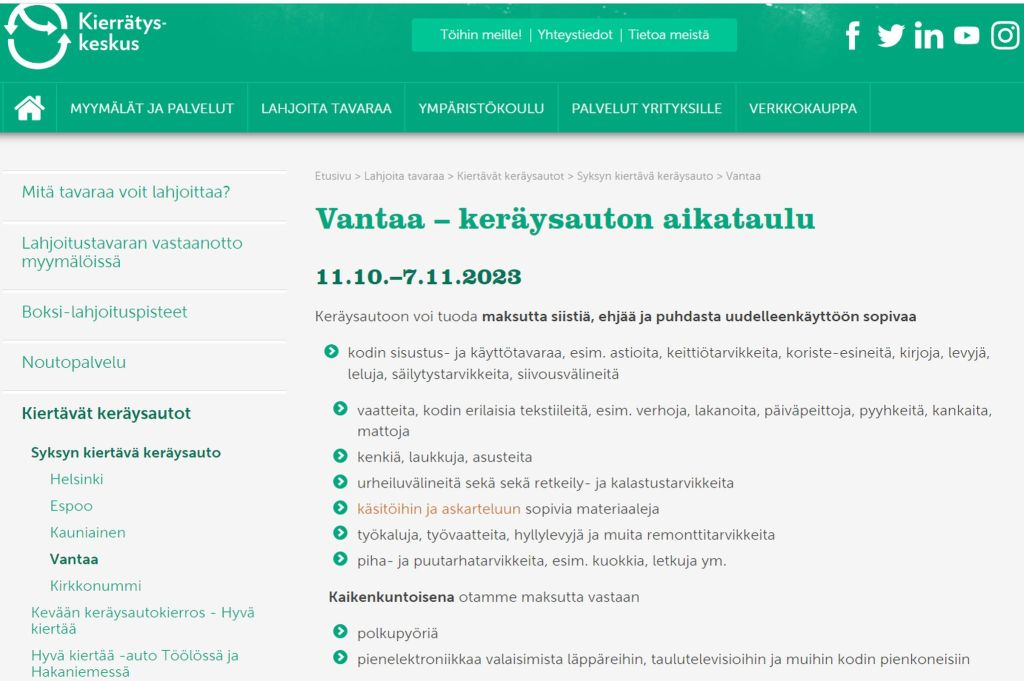 Kierrätyskeskuksen keräysauto myös Kaivokselassa