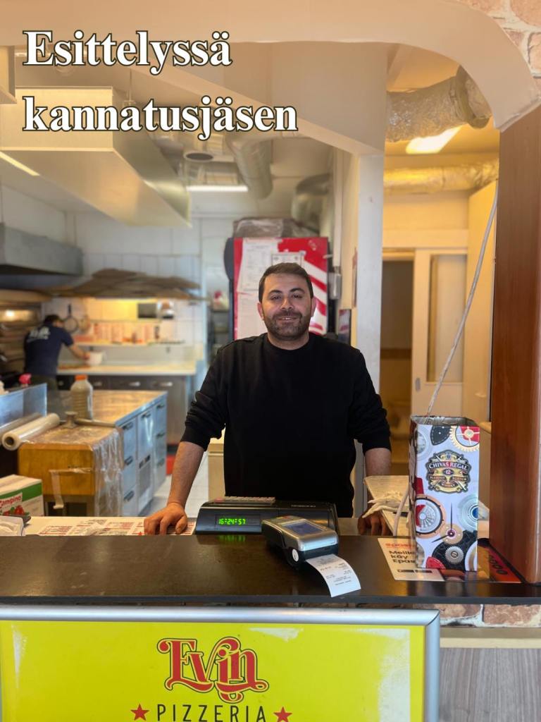 Ensimmäisenä tutustumiskohteena on Evin Pizzeria Kaivokselan vanhan ostoskeskuksen sydämessä. Miten ravintolan kurdinkielinen nimi onkaan varsin runollinen ja sopii yrittäjän filosofiaan…?