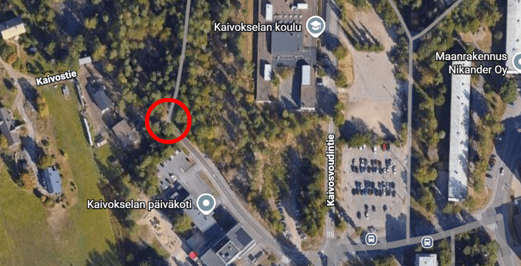 Opastus lähti kaivosalueen reunalta aivan Kaivokselan päiväkodin parkkipaikan vierestä.